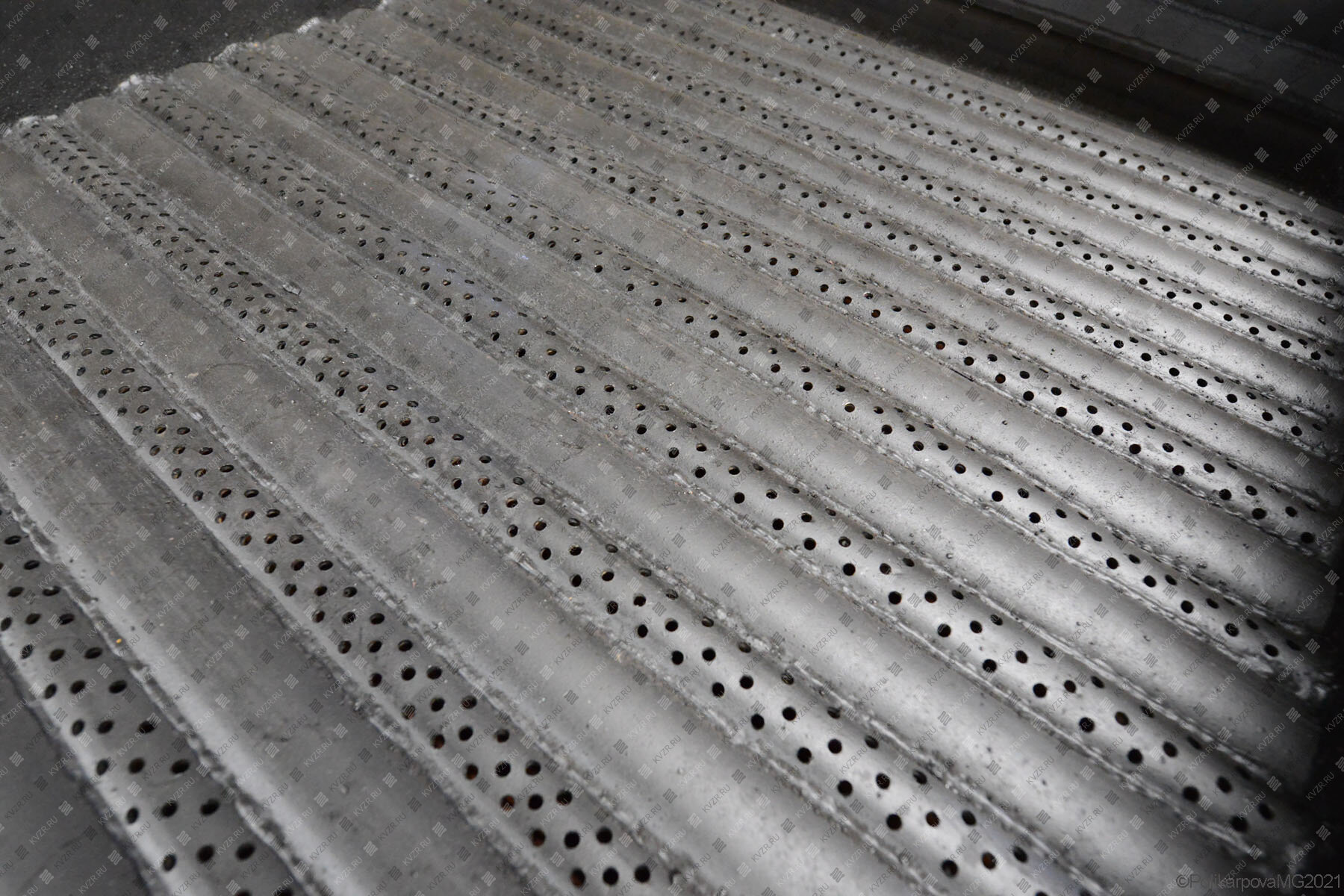 Топка ОУР с водяными колосниками – это низ топочной трубной части агрегата. Водяные колосники, на которых происходит сгорание топлива, представляют собой ряд труб, по которым движется нагреваемая в котлоагрегате вода, между которыми вварены полосы металла с отверстиями для подачи воздуха в топку. За счет движения теплоносителя и воздуха трубы топки охлаждаются. Маленькие отверстия в полосе не дают проваливаться в зольник недогоревшему топливу.