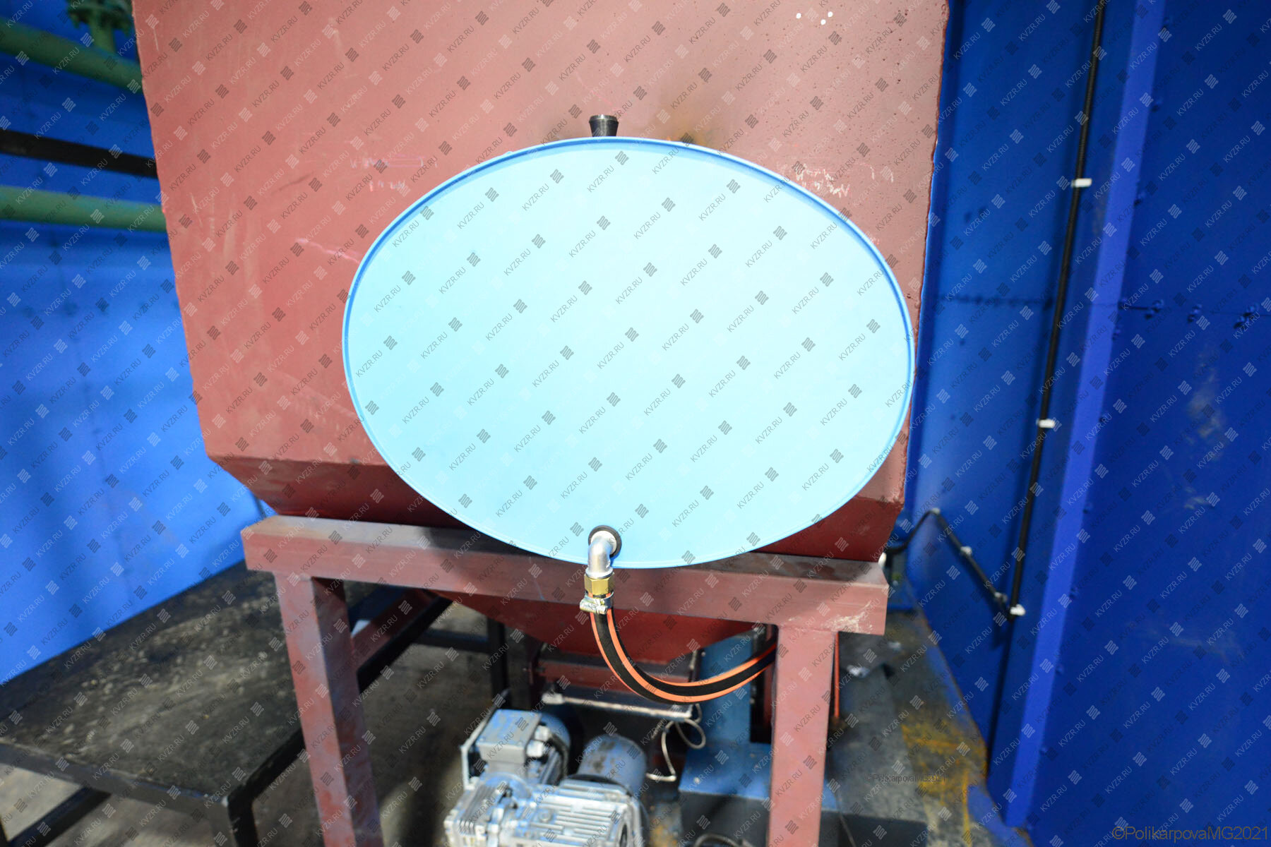 Бункер и привод питателя располагаются на общей раме. Конструкция бункера и узел соединения со шнековым питателем позволяет полностью опорожнять бункер за счет питателя топлива.