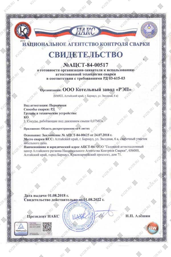Получено свидетельство об аттестации технологии сварки на следующие виды оборудования: