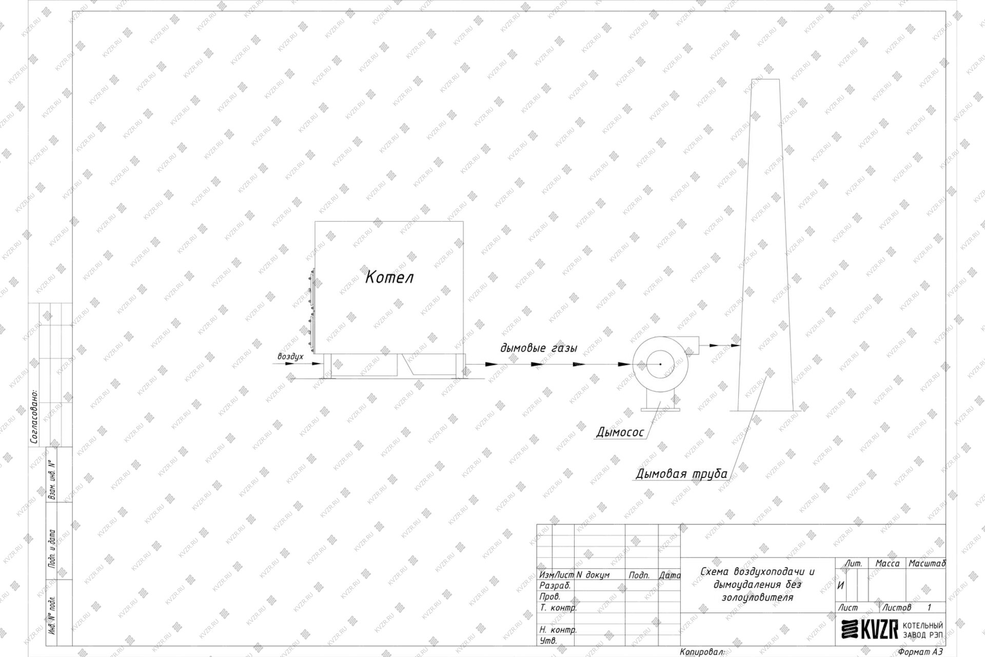 При работе котла на дровах 150 кВт на древесном топливе дополнительная очистка дымовых газов с помощью золоуловителей не нужна. Схема подключения при этом следующая - дымовые газы выходят из котла в газоходы котельной, затем в дымосос и далее снова по газоходам в дымовую трубу. В зависимости от компоновки котельной дымосос может устанавливаться как в котельной, так и на улице. Наш завод производит газоходы и переходники к ним. Получив схему вашей котельной мы можем изготовить для вас комплект газоходов, переходников нужных размеров и сечений. На месте такие детали собираются как конструктор. Обращаем ваше внимание, что газоходы требуют изоляции, для защиты персонала от ожогов, так как уходящие газы имеют высокую температуру, а на улице газоходы требуют изоляции для избежания образования конденсата.
